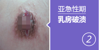 此时急性炎症已消退,发生纤维组织增生,在乳晕区内形成轻微疼痛及压痛的肿块,穿刺常可抽出脓汁,肿物可溃破而形成脓瘘,经久不愈,或愈合后重新有新的小脓肿形成,使炎症持续发展。